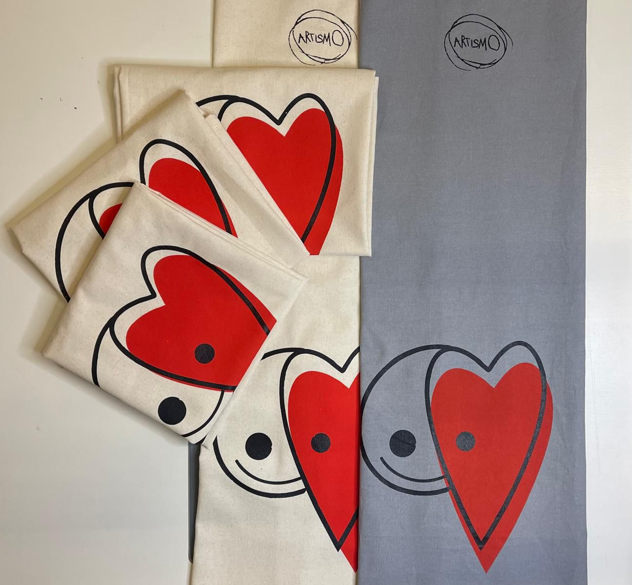 Nel laboratorio di Artismo, con un telaio e la tecnica della serigrafia, questa bella storia viene impressa su carta o su tessuto, dando vita a oggetti stampati interamente a mano, con i quali si sostengono due importanti realtà: Associazione Sindrome di Sturge-Weber Italia e Artismo Venezia.
